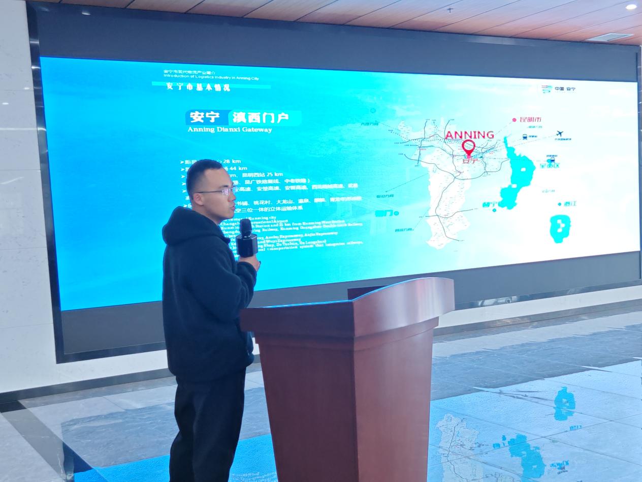 昆明国际陆港安宁北港中心赵显华同志作“安宁北港发展规划及安宁市物流产业扶持政策”宣讲。赵显华同志通过上位规划、战略定位、功能布局、通道优势、产业优势等讲述了安宁北港未来物流产业的发展机遇,通过安宁市现代物流有关扶持政策宣讲提振了企业落地安宁、落地南亚陆港的信心。